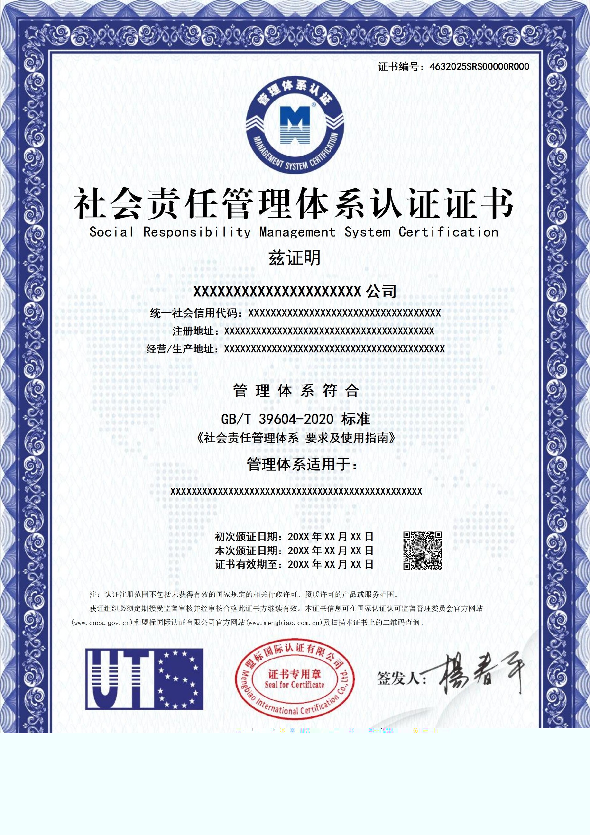 社會(huì)責(zé)任管理體系認(rèn)證證書-樣板